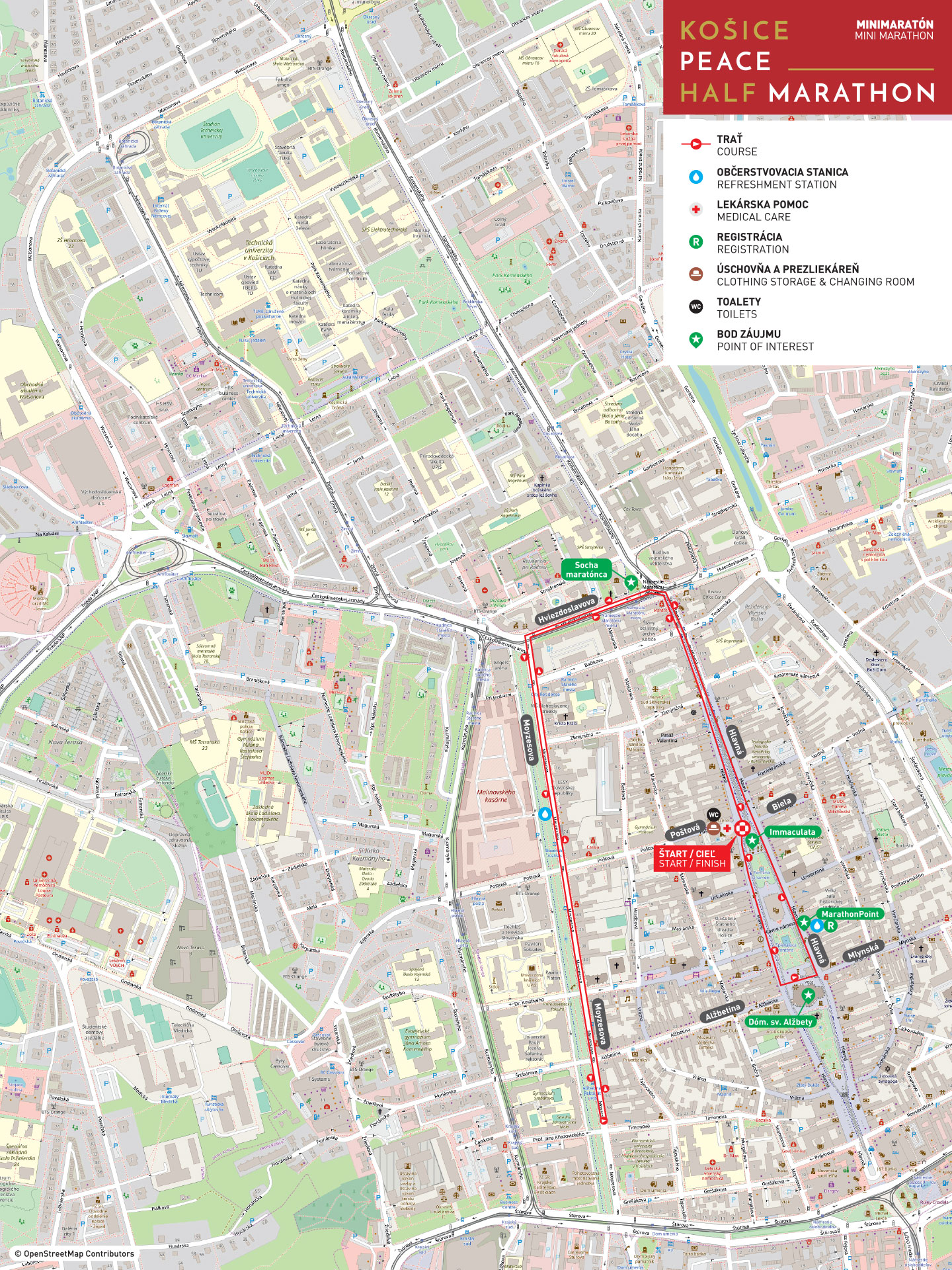 Štart a cieľ je umiestený v pešej zóne na Hlavnej ulici v lokalite Immaculata.